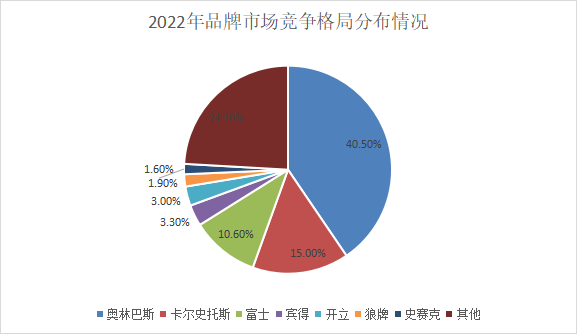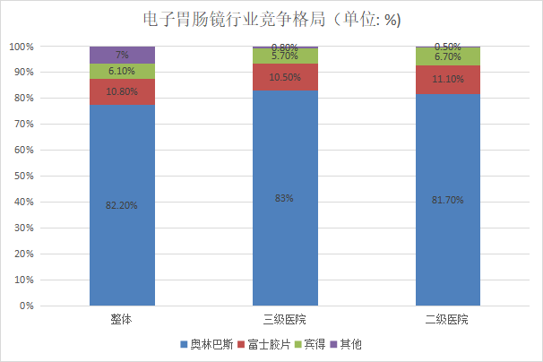 主要品牌中,日本奥林巴斯占据整体市场份额的40.5%,其次为德国卡尔史托斯,占据市场份额的15%,第三名为日本富士,占据10.6%。